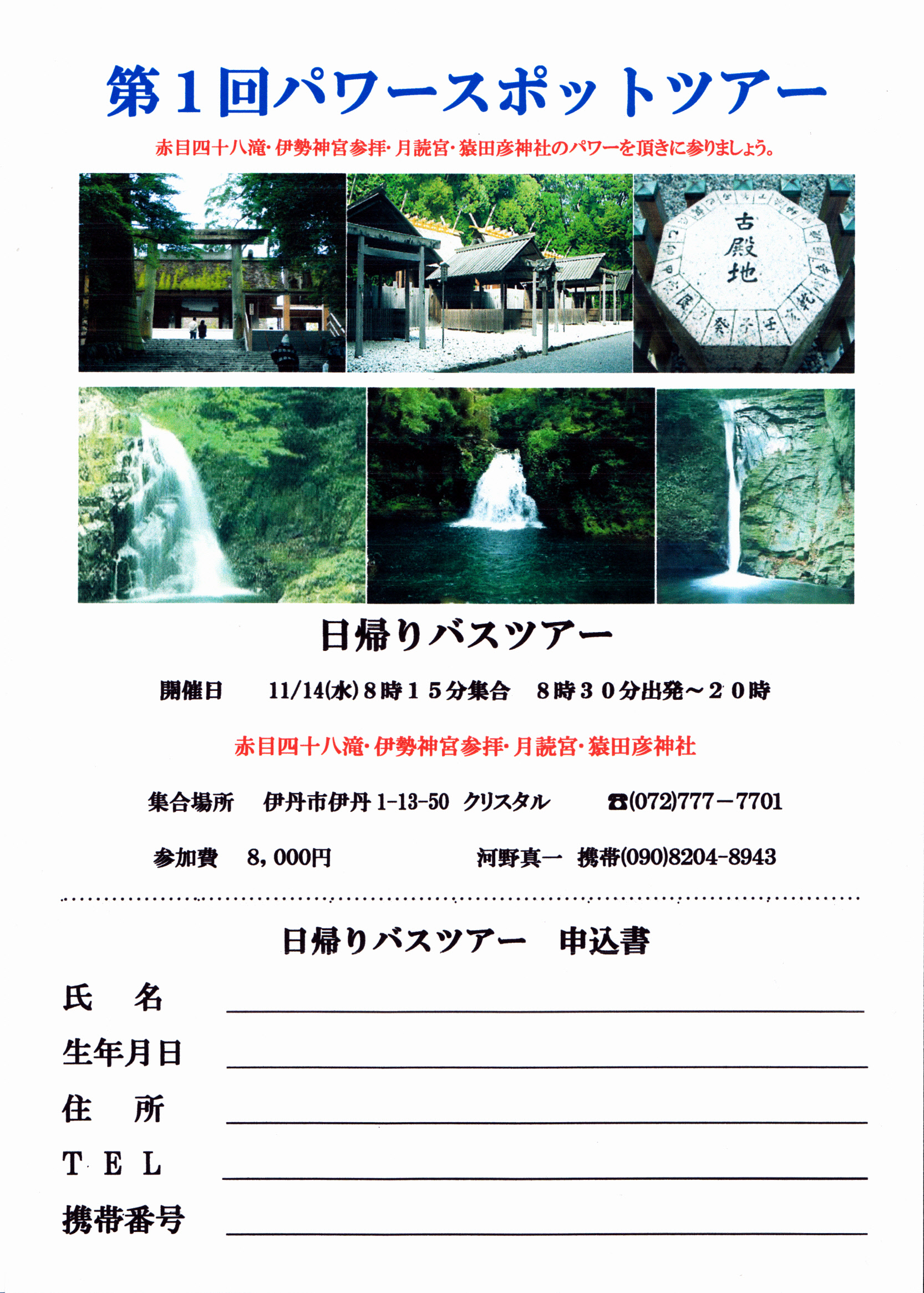 赤目四十八滝・伊勢神宮参拝・月読宮・猿田彦神社のパワーを頂きに参りましょう。