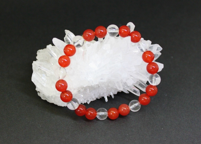 ★サイズ(17センチ)★ ●赤めのう(8ミリX16) ●水晶(8ミリX8)