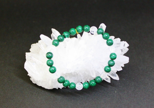 ★SSサイズ(16センチ)★ ●マラカイト(10ミリX12) ●クラック水晶(10ミリX6)
